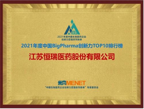 9月16日,由米内网主办的“2021年度中国生物医药企业创新力百强系列榜单”发布会在线上举办。AG亚游集团医药继去年登顶“中国BigPharma企业创新力TOP10排行榜”后,今年再次名列该榜单首位。