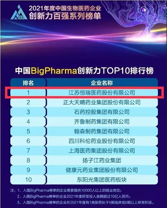 蝉联榜首!AG亚游集团医药再次登顶“中国BigPharma企业创新力TOP10排行榜”