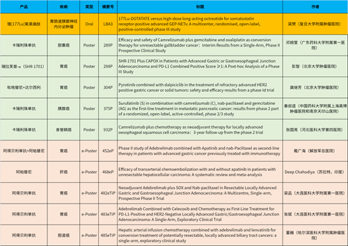 在消化系统肿瘤领域,AG亚游集团产品相关研究共入选1项最新突破性摘要(LBA)、5项壁报和5项电子壁报,共11项研究。其中阿得贝利单抗入选4项研究、卡瑞利珠单抗入选3项研究。